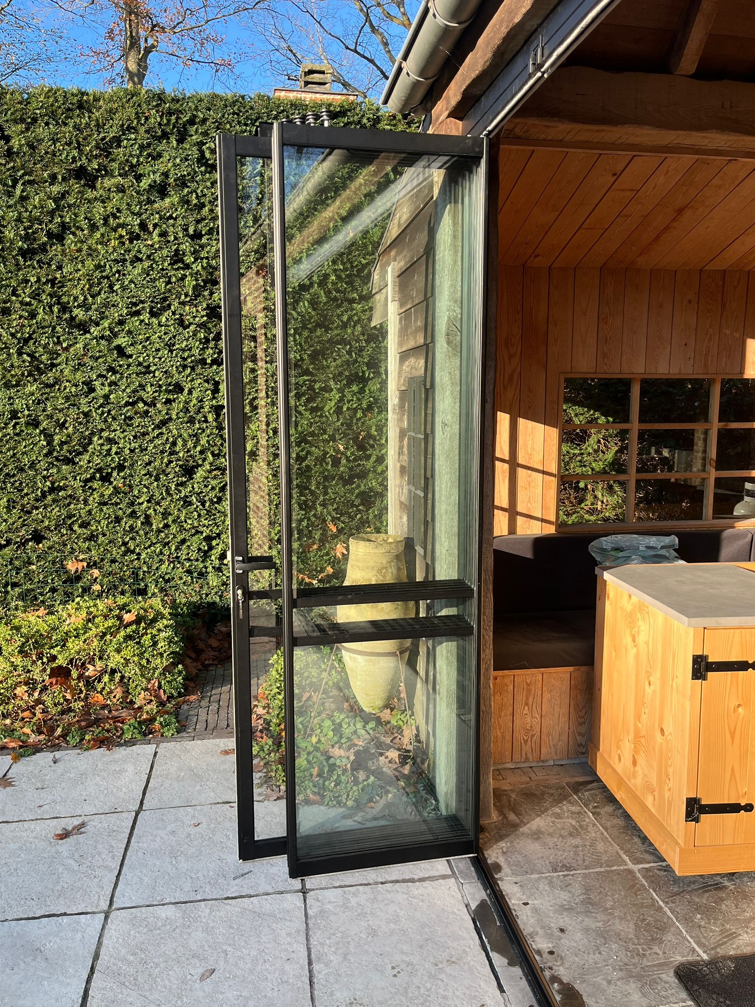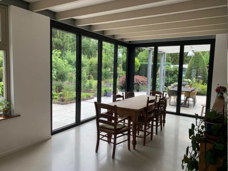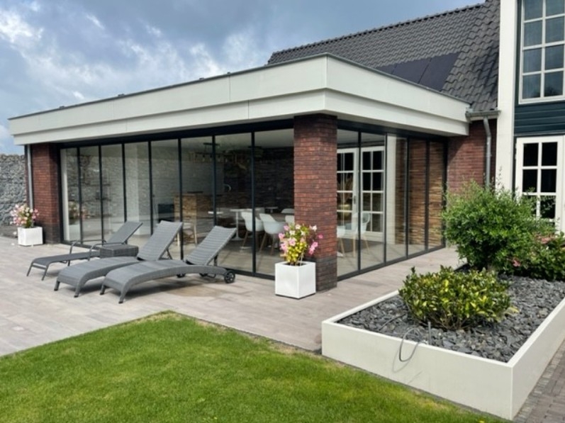 Vouwwanden bestaan uit meerdere glaspanelen die soepel opvouwen naar één zijde, waardoor u moeiteloos een brede doorgang naar buiten creëert. Deze slimme en flexibele maatwerkoplossing zorgt voor een natuurlijke overgang tussen binnen en buiten. De wanden laten daglicht binnen, geven u een panoramisch uitzicht en dragen bij aan een open en ruimtelijk gevoel. Bovendien verhogen ze het comfort in elk seizoen, doordat u in de zomer optimaal van buiten geniet en in de winter profiteert van beschutting.